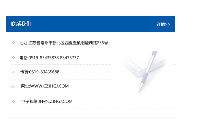 傳真:0519-83435688    郵編:213135    網址:WWW.czjhgj_com.moshangchun.com    電子郵箱:JH@czjhgj_com.moshangchun.com